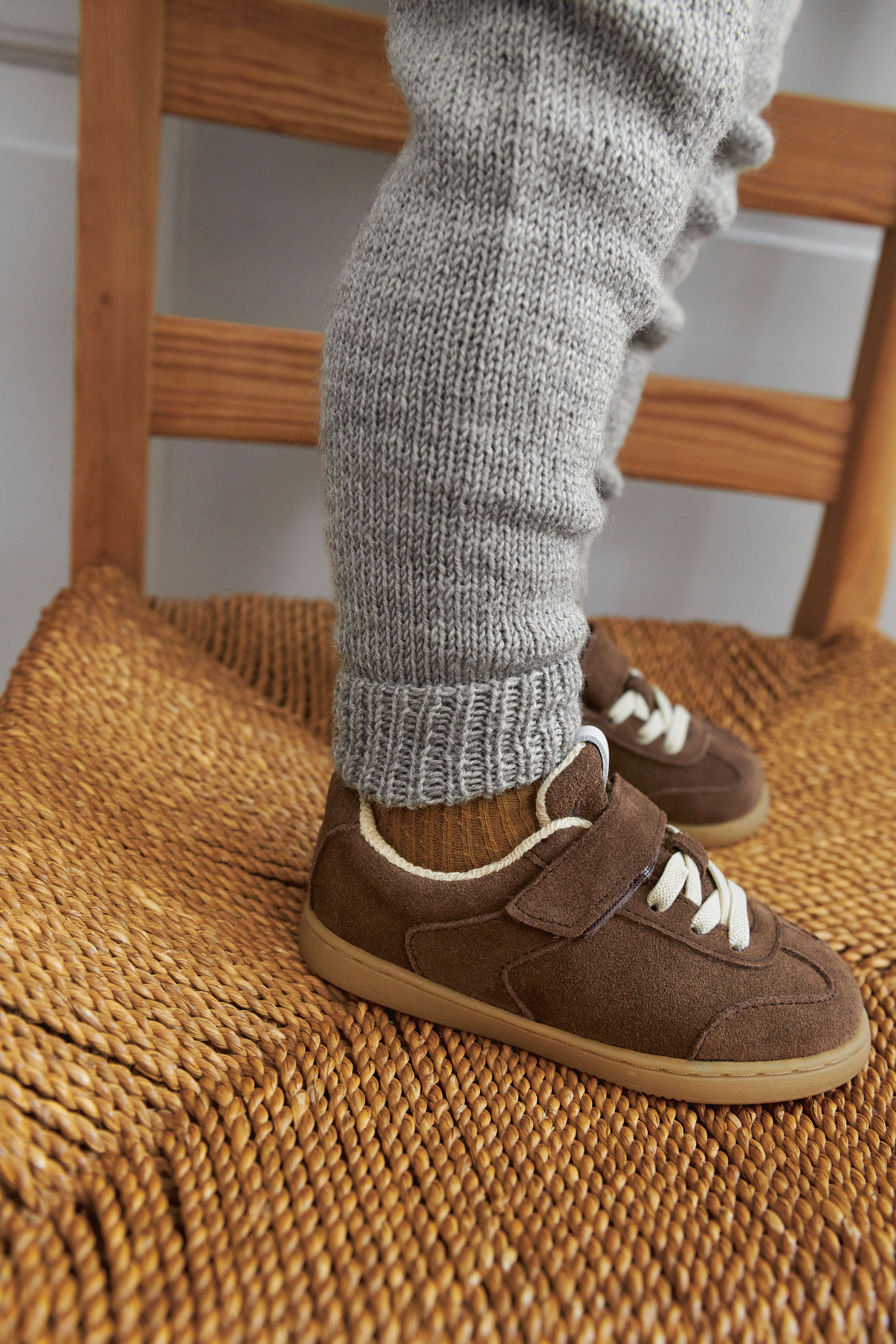 Vrangborden rundt bena strikkes ekstra lang, slik at den kan brettes opp og buksen varer lenge.