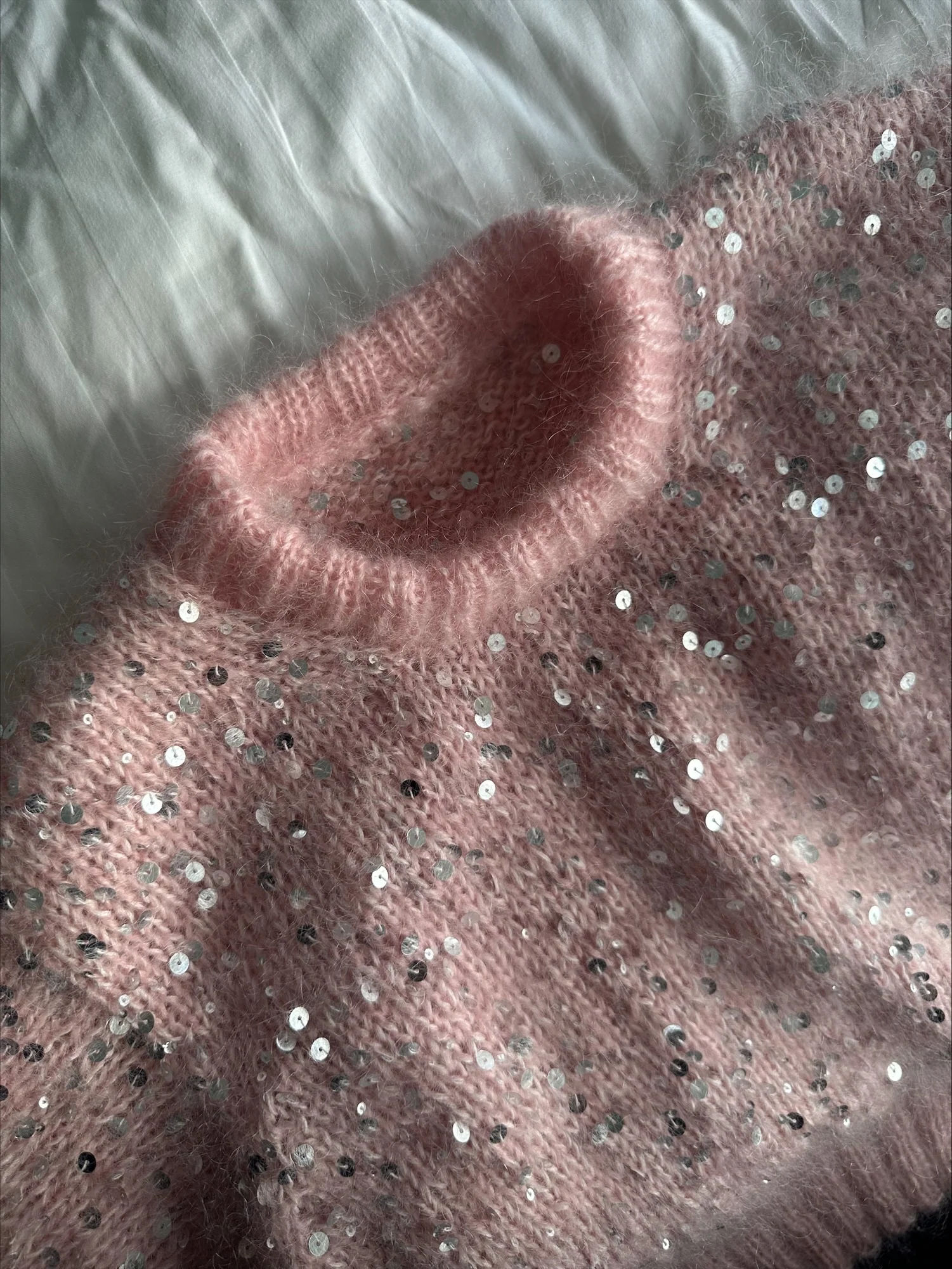 Materialer: 200 (200) 250 (250) 300 (300) 300 gram Ballerina Chunky Mohair fra Sandnes Garn, sammen med 200 gram Cosmo fra Lana Grossa.