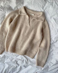 Den hvite Elisabeth Blouse er strikket i Sunday fra Sandnes Garn i fargen Almond [2511] sammen med Tynn Silk Mohair fra Sandnes Garn i fargen Kitt [1015].
