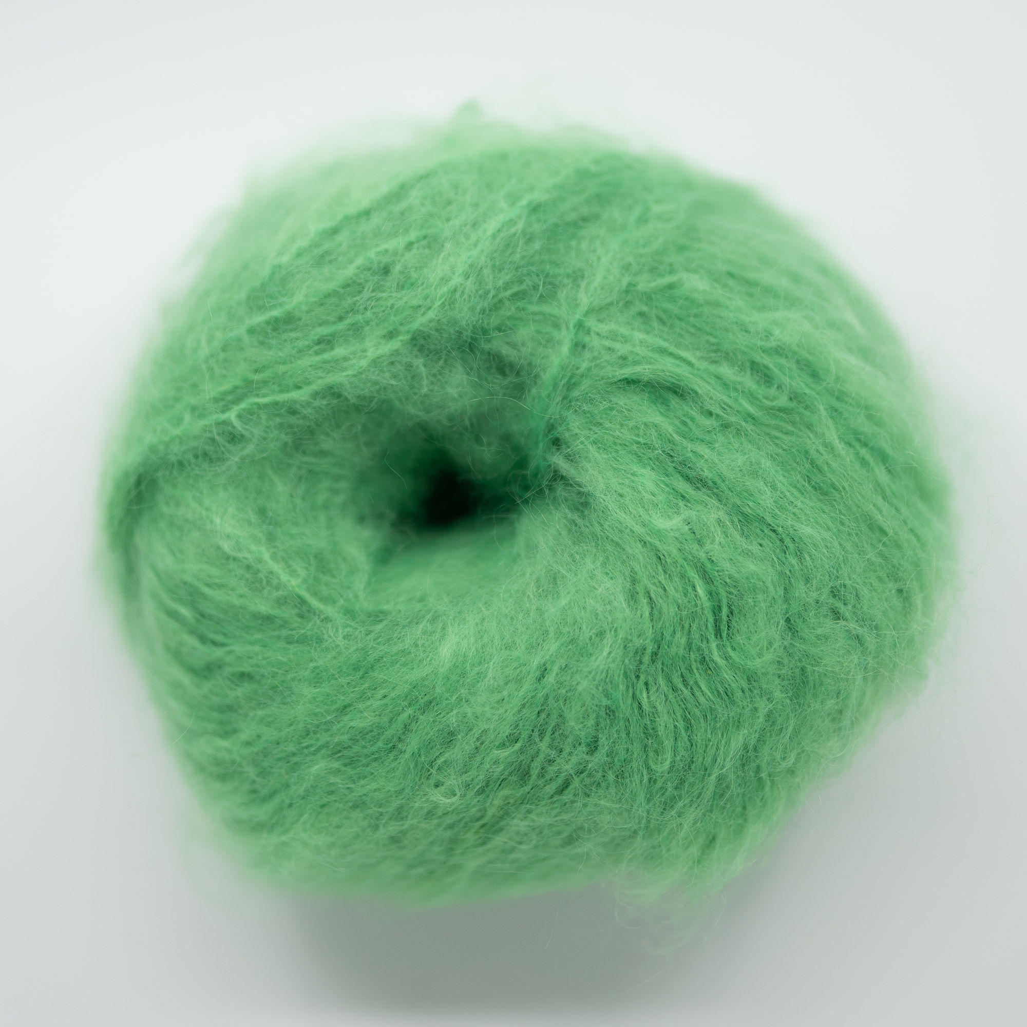 Gir et delikat og pusete resultat. Mohairgarnet er mykt, silkeaktig og luftig. Holder deg varm om vinteren og kjølig om sommeren. Perfekt i kombinasjon med merino ull.