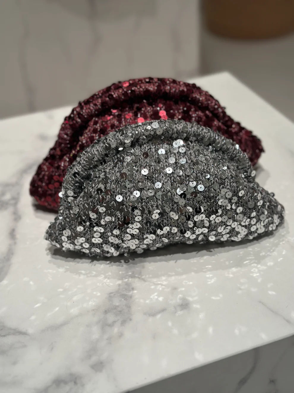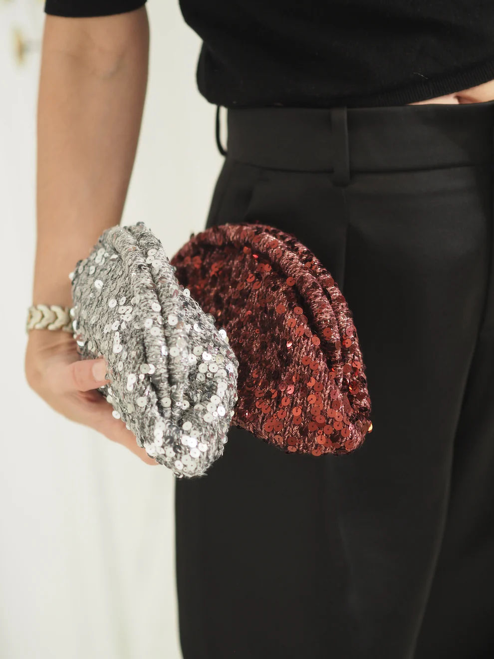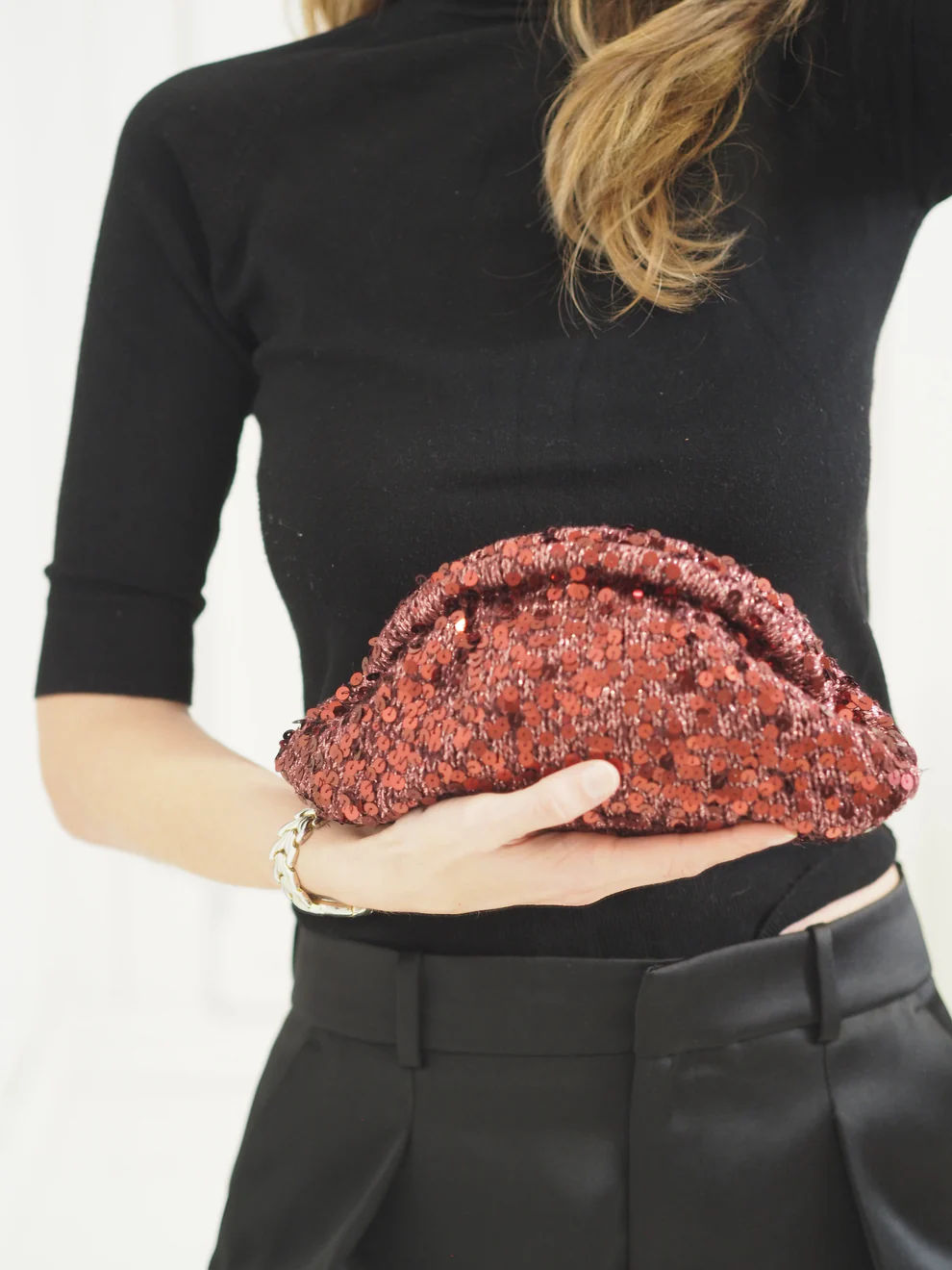 Holiday Clutch er strikket. Den perfekte lille clutchen som skinner litt ekstra. Perfekt til mobilen og lipglossen på festen.