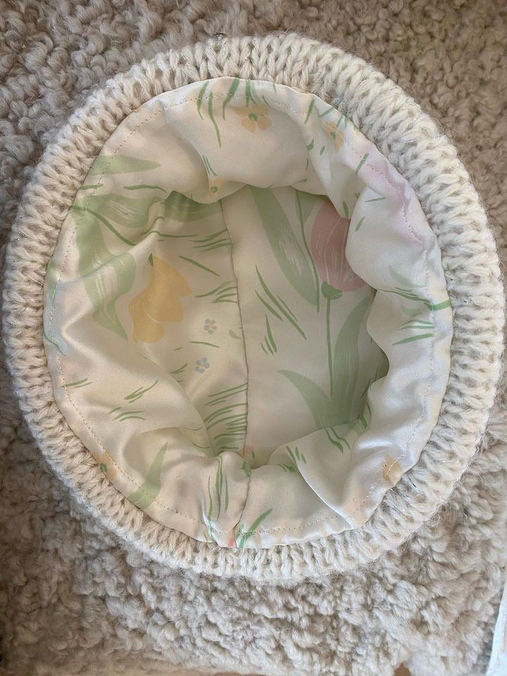 Vesken strikkes i to deler: først strikkes veskens bunn, deretter hentes det opp masker langs kortsidene for å strikke resten av vesken i en vakker honey-struktur. Det gir vesken et dekorativt preg. Etter at strikkingen er fullført, monteres vesken med en lås for en praktisk og sikker lukking. Til slutt sys et fôr inn i vesken, som gir en elegant finish og ekstra funksjonalitet.
