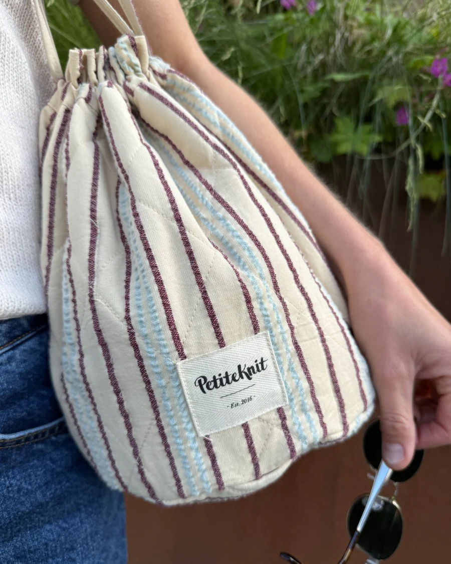 Knitter's Project Bag i quiltet bomull til dine prosjekter, noter og udstyr. Prosjektvesken har indvendige lommer, så det er lett at organisere garn, pinde, sakse, maskemarkører osv.