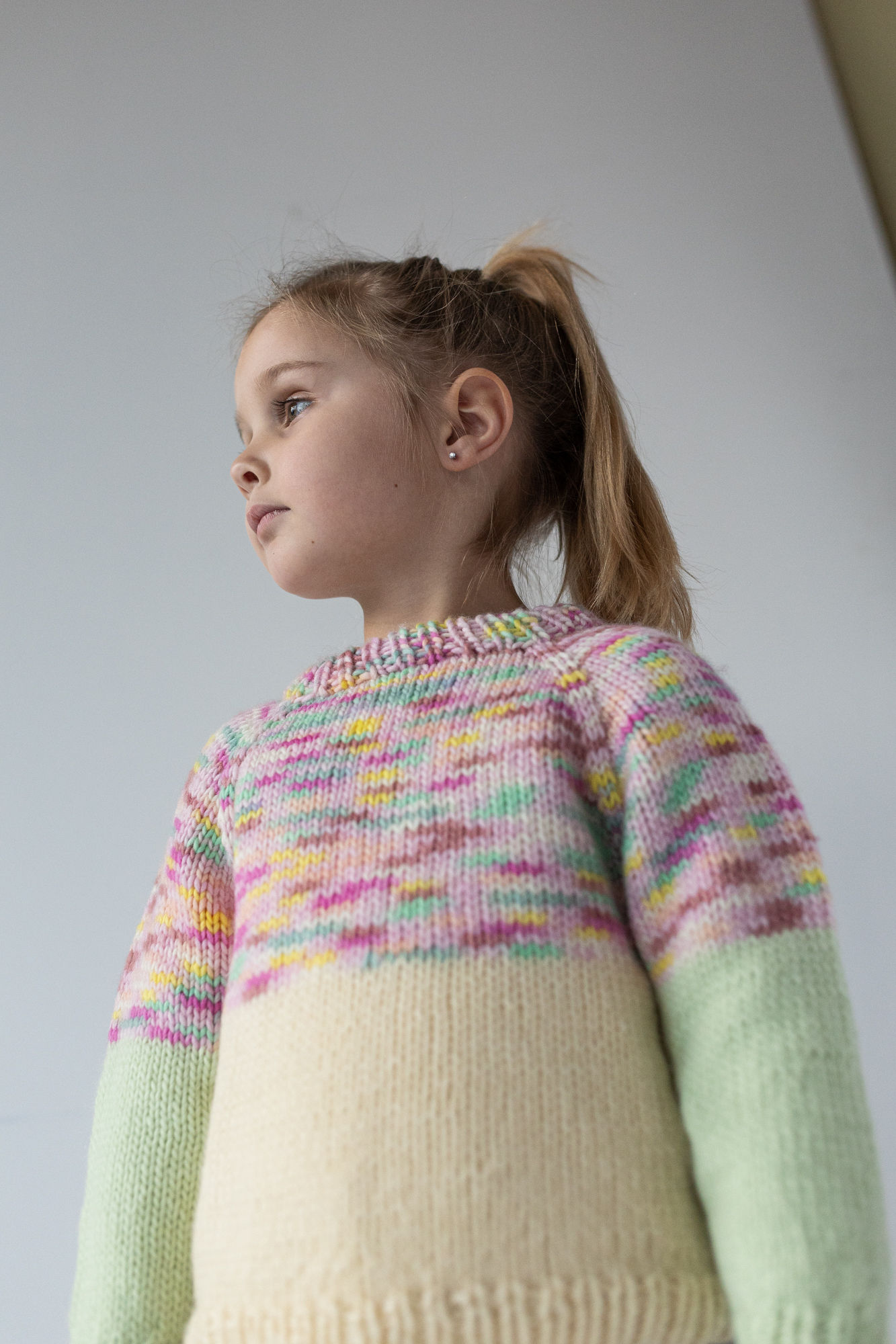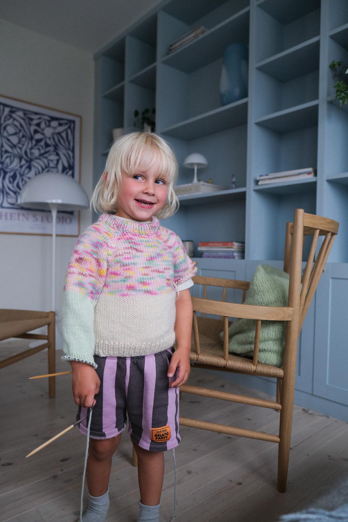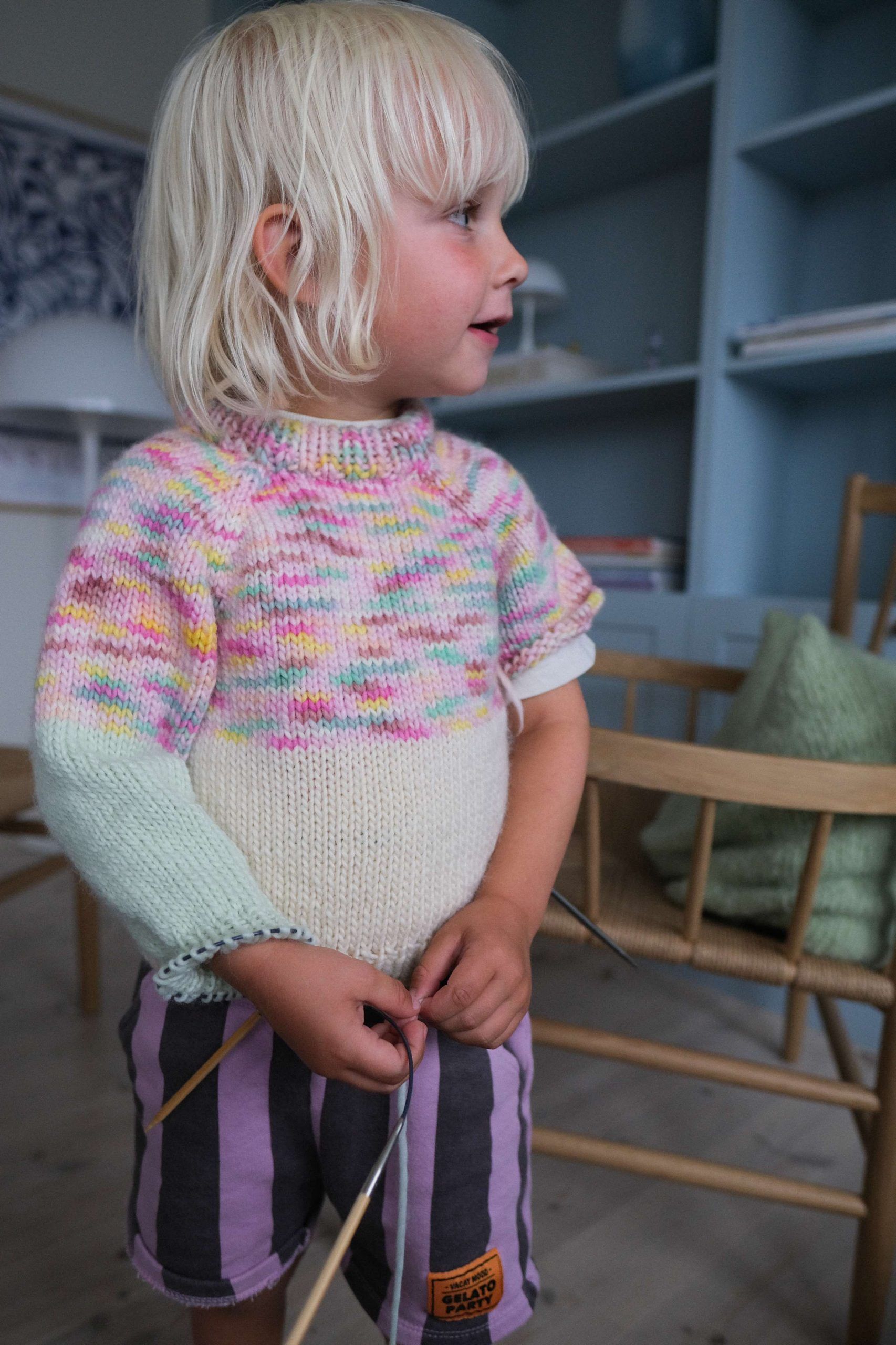 Strikkeoppskrift søt enkel barnegenser i deilig myke Hip Wool. (It´s that kind of) Magic sweater strikkes ovenfra og ned med raglanøkninger. Vendepinner i hals for en finere passform. 3 ulike farger er brukt, hvor en er håndfarget Hip Wool i nye «Mix» farger.
