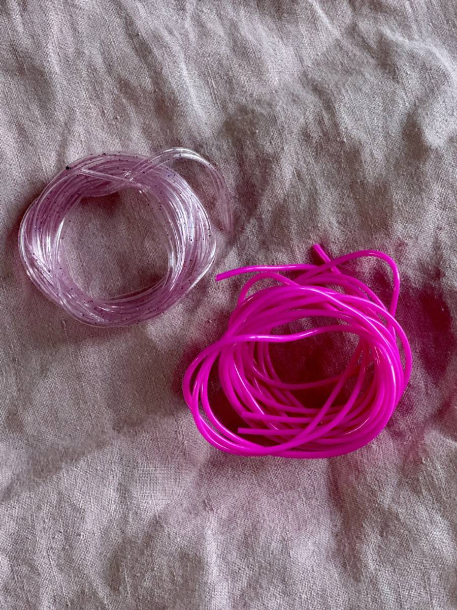 Lys rosa gjennomsiktig med glitter 3 stk a 1 meter.