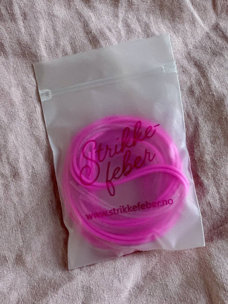 Strikkefebers maskesnor kommer i en praktisk frostet pose med ziplock.