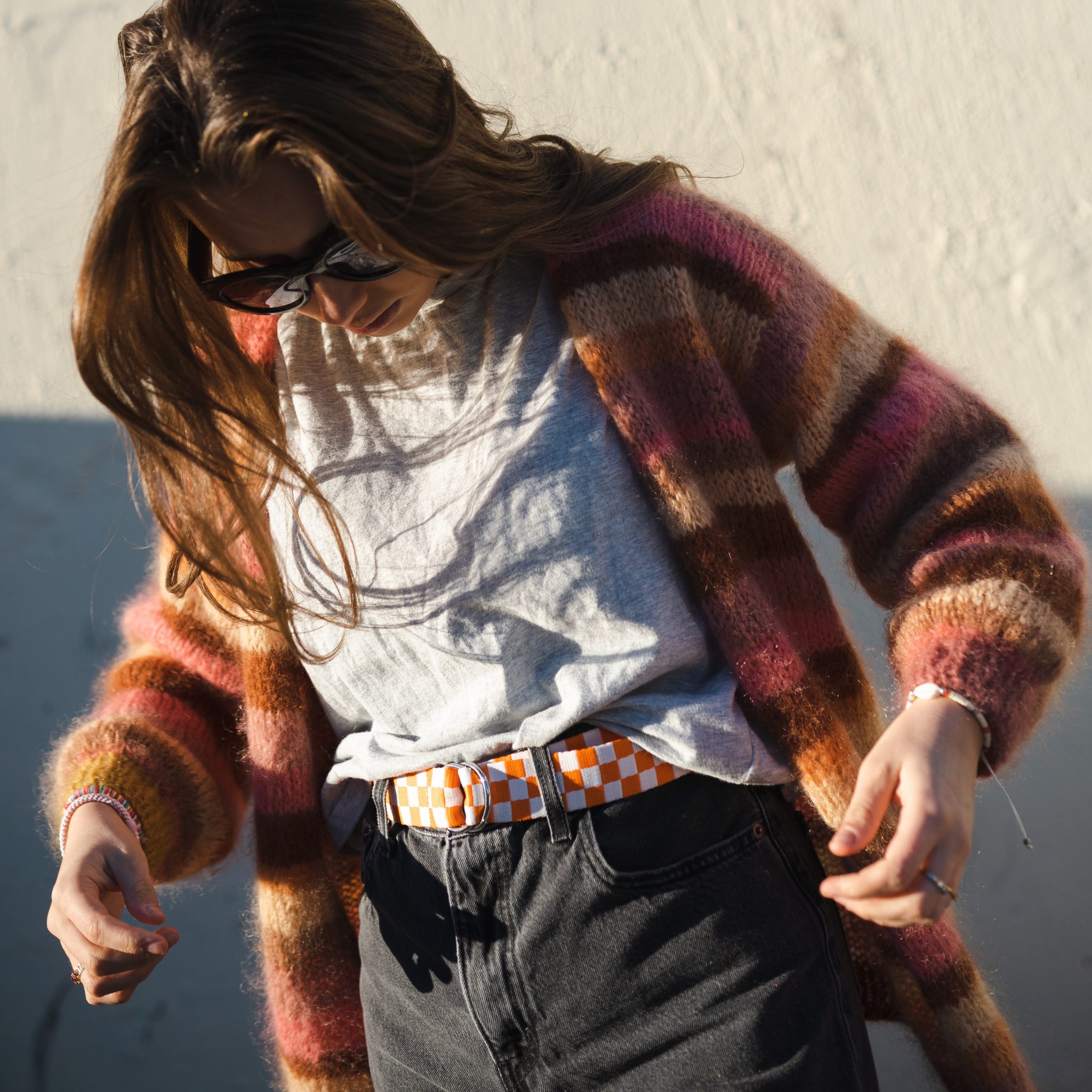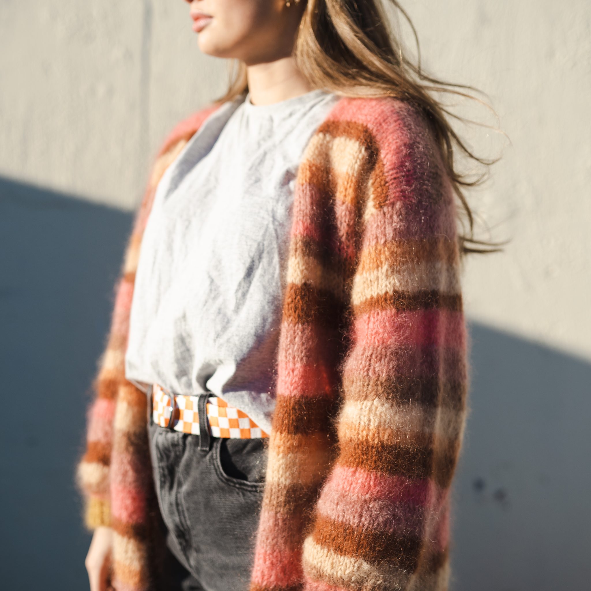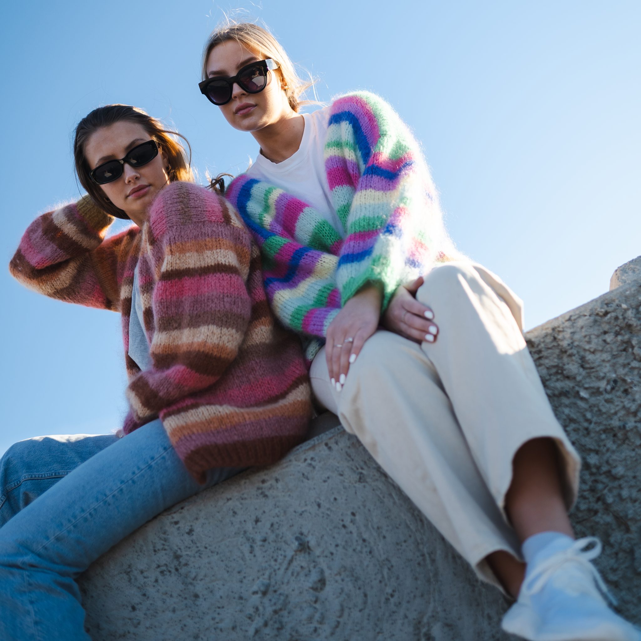 Rolige farger i XS/S: 1: Chestnut Hip Mohair, 2: Rose Garden Fluff, 3: Tasty Apricot Fuff, 4:Golden Sand fluff, 5: In Love Pink Fluff, 6: Nougat Fluff. Ermeribb i Wild Flower og Champagne.