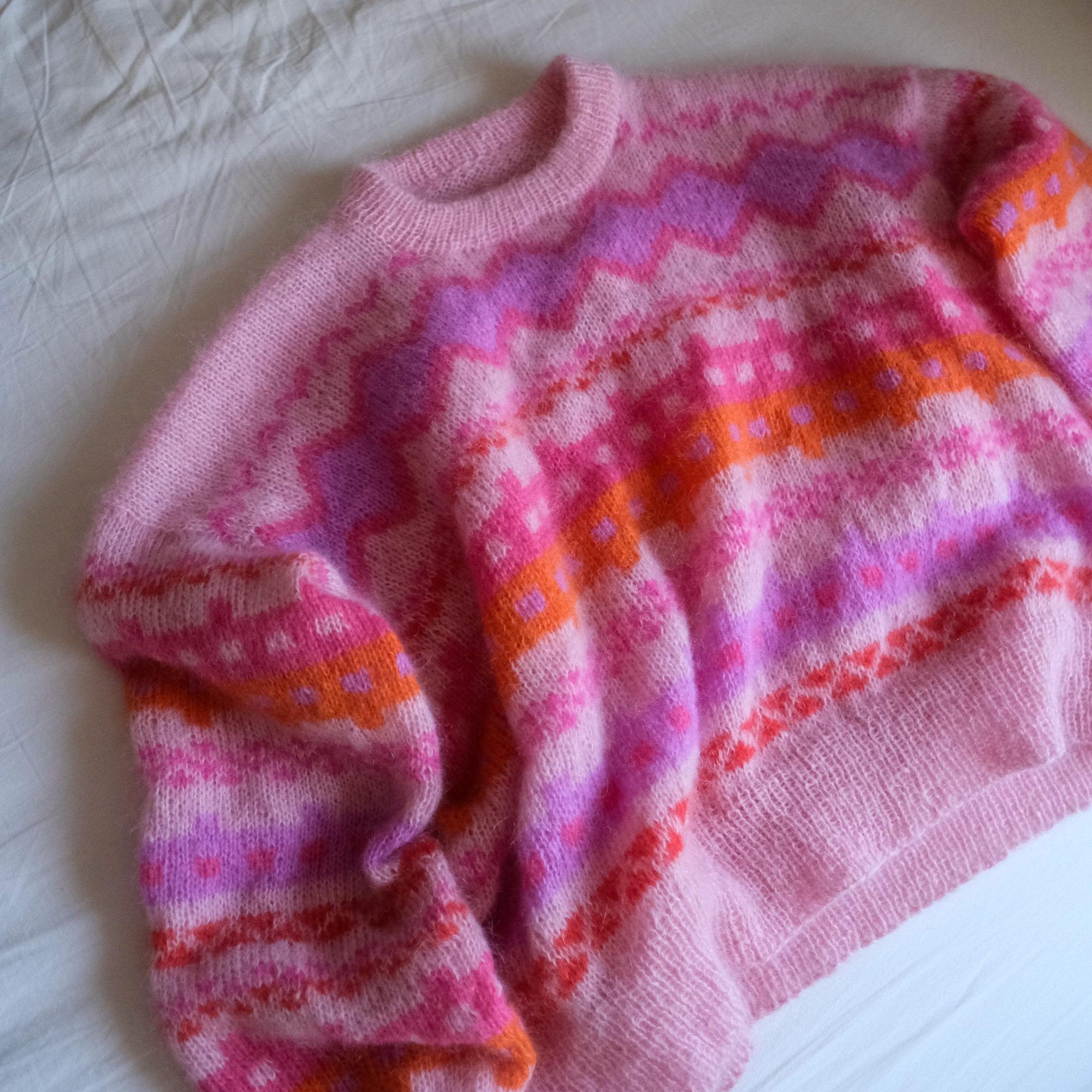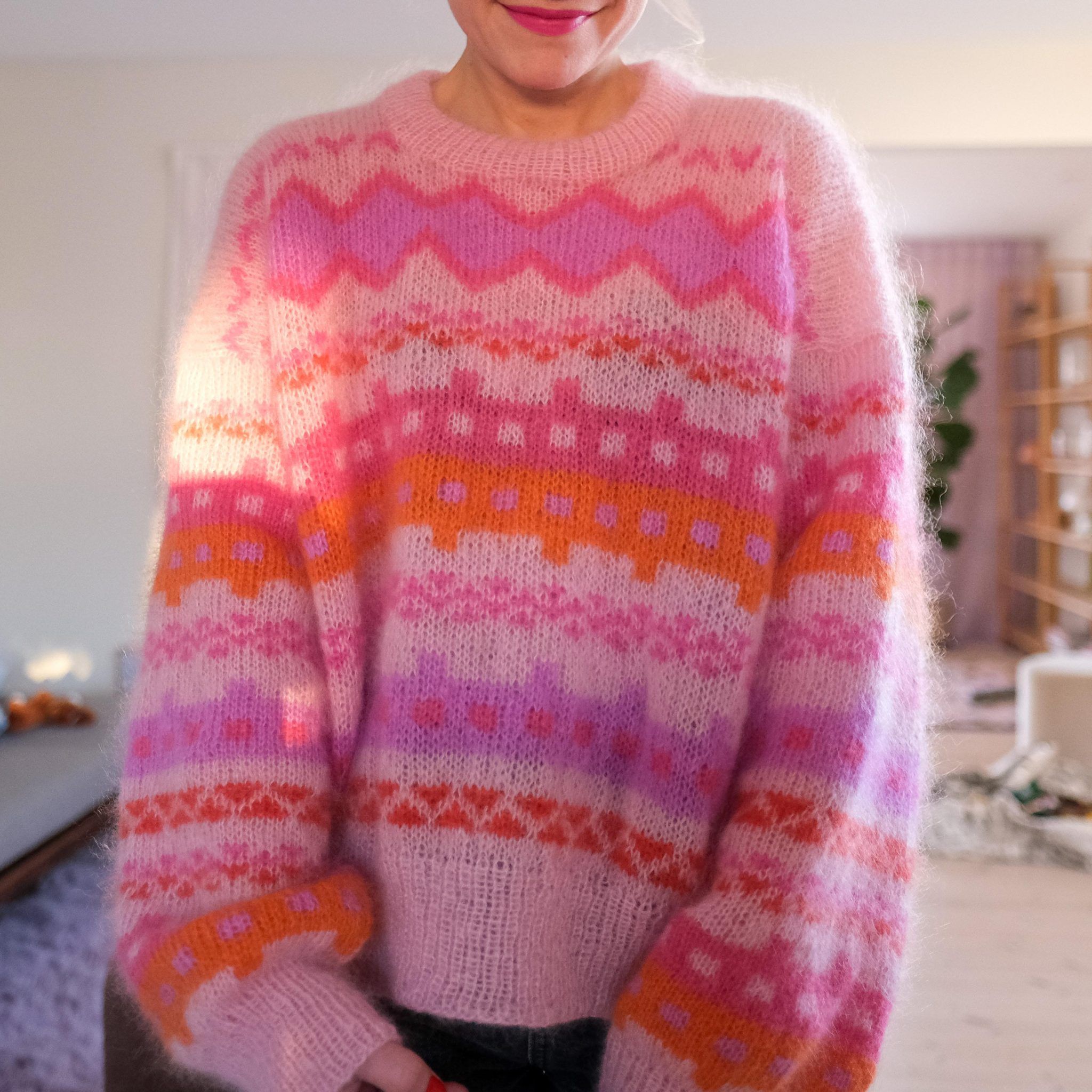 Passform: Genser skal være noe vid med normal lengde. Velg selv om du vil strikke den oversized (+ 30 fra egen overvidde ) eller litt løs (+ 10-15 cm) positive ease.