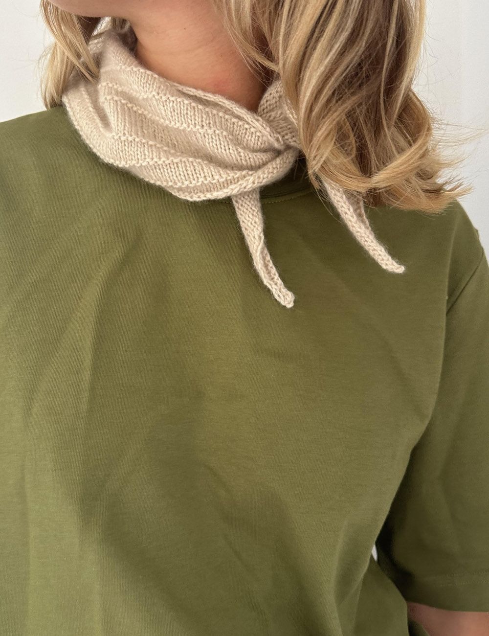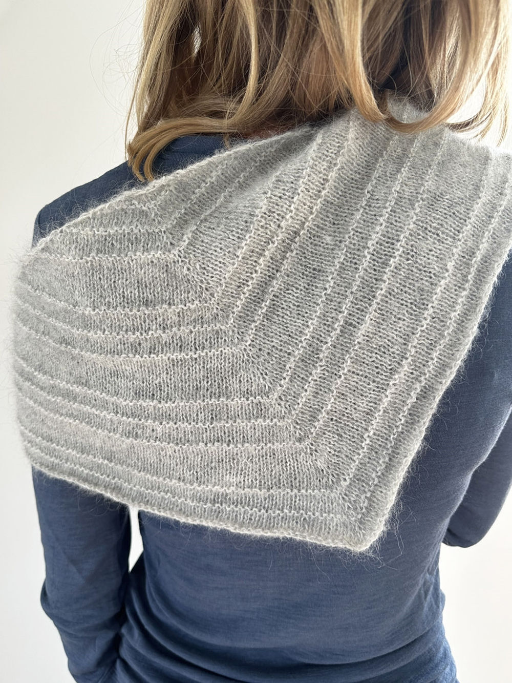 Garnmengde, alpakka & silkmohair (lille skjerf i natur og stort skjerf i lys grå.