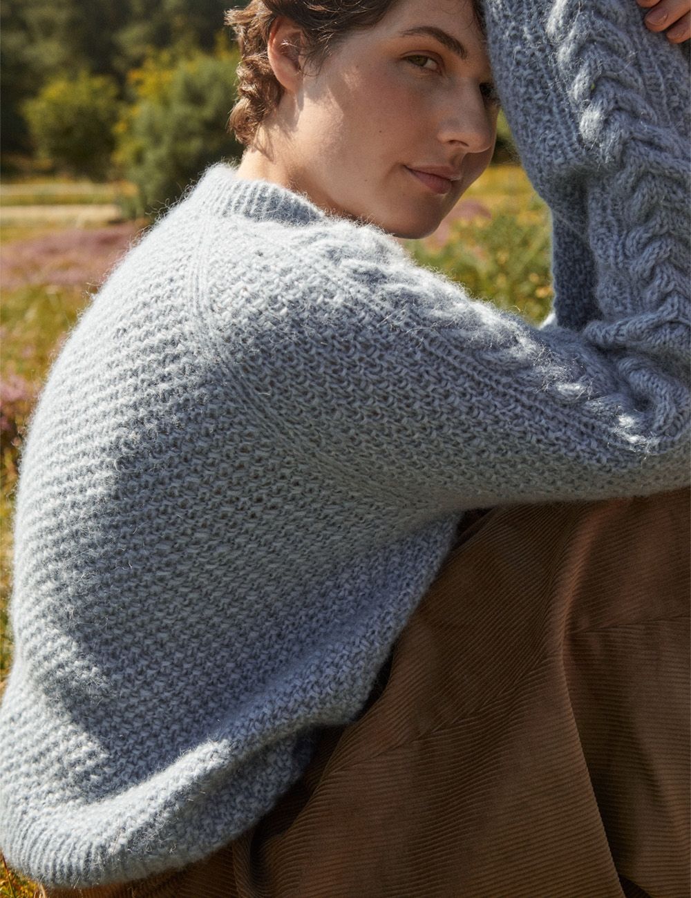 Siri sweater er tenkt til å ha en bevegelsesvidde på ca. 18-25 cm. På bildene er den vist med en bevegelsesvidde på ca. 20 cm. Fasongen er fleksibel så velg en størrelse større eller mindre, hvis du ønsker mer eller mindre bevegelsesvidde. Den oppgitte lengden er målt midt bak, ekskl. halskanten.