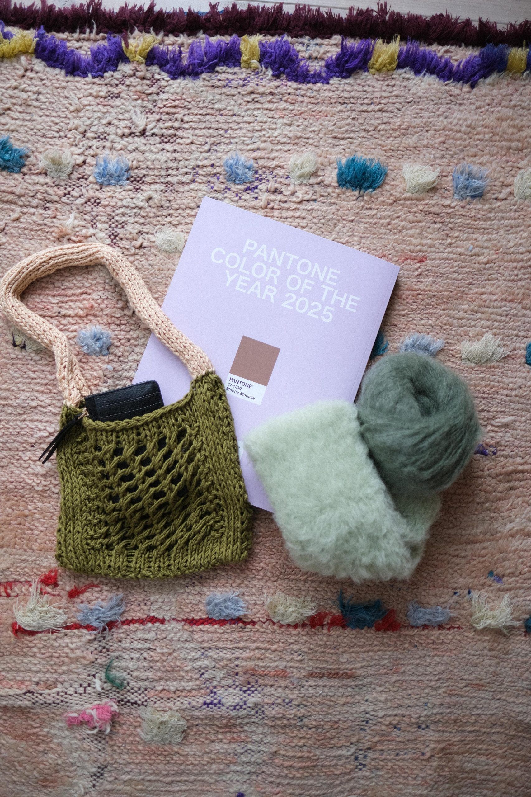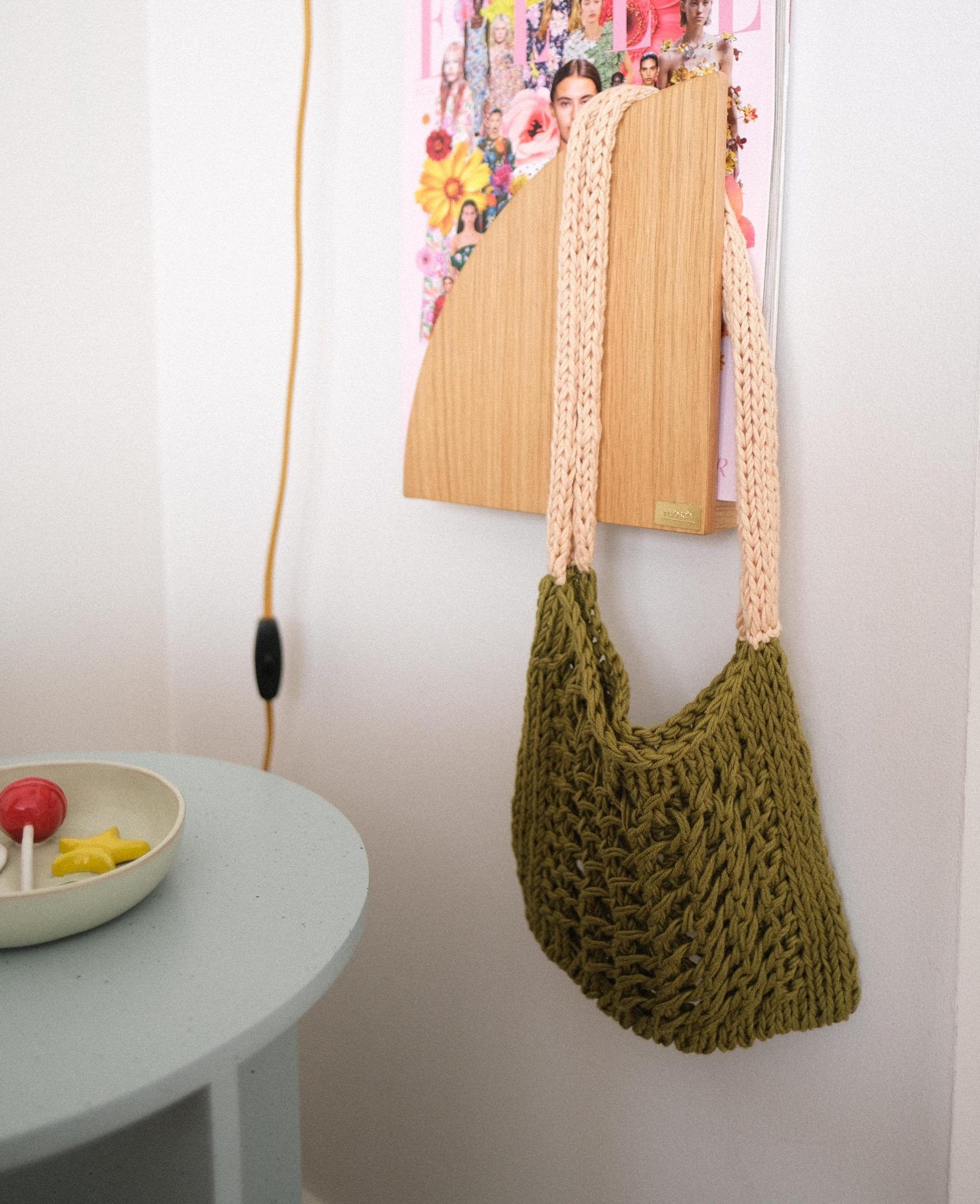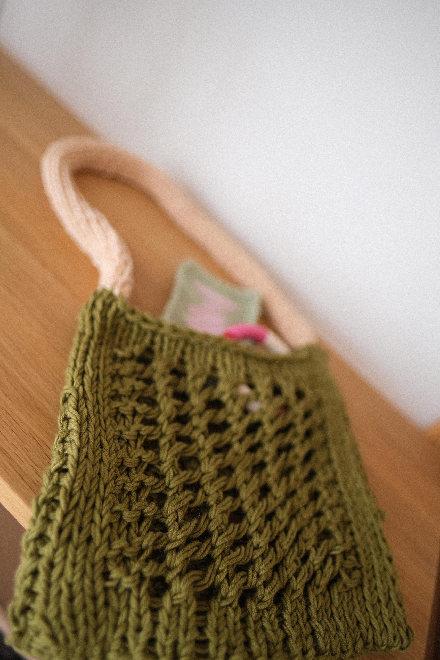 Søt sommerveske i vår digge myke bomull. Strikkes i 2 tråder – velg mellom ensfarget eller i 2 farger (som avbildet).