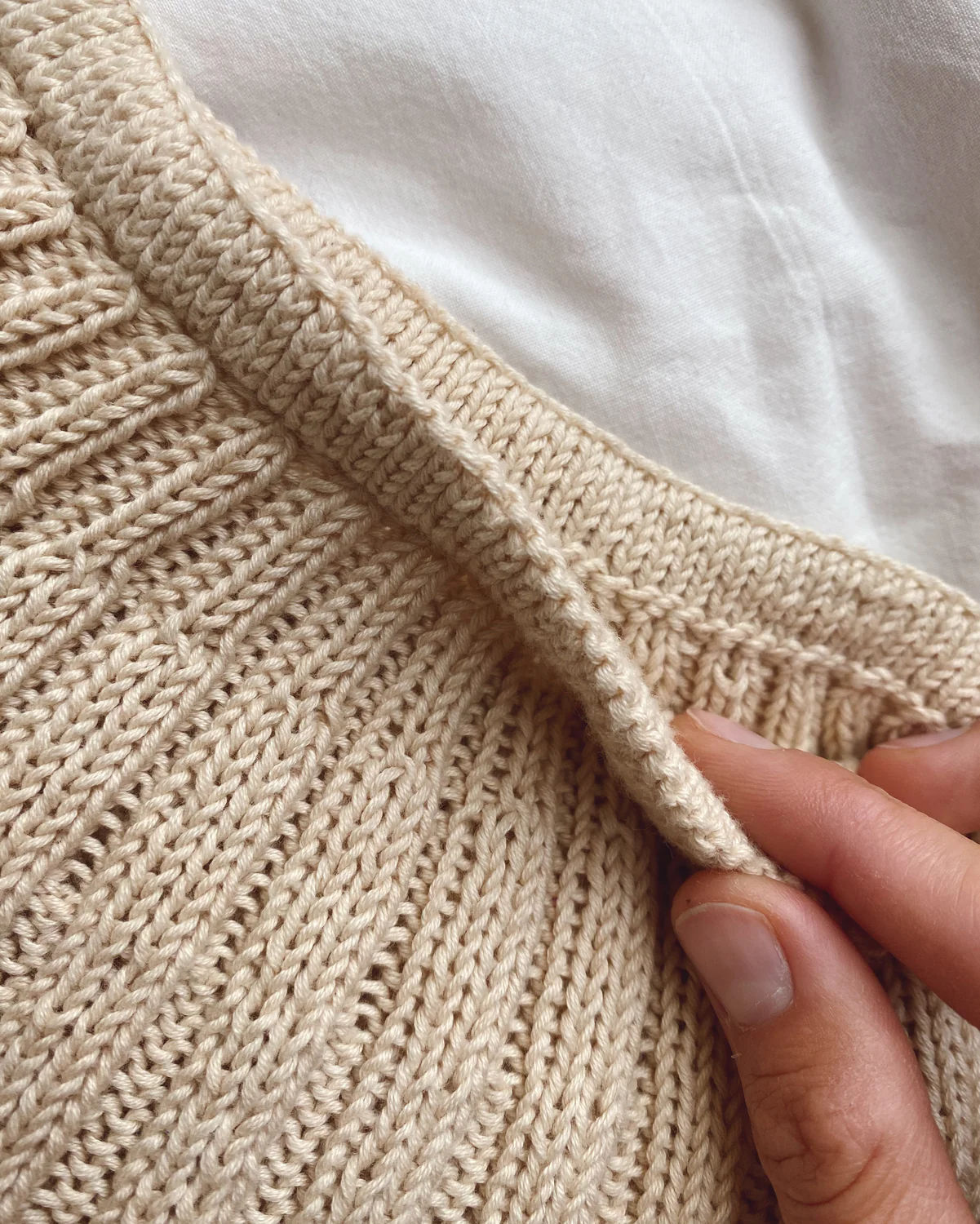 Veiledende pinner: Rundpinne 3 mm (60 og 80 cm), rundpinne 2,5 mm (80 cm), rundpinne 2 mm (40 cm), strømpepinner 2,5 og 3 mm