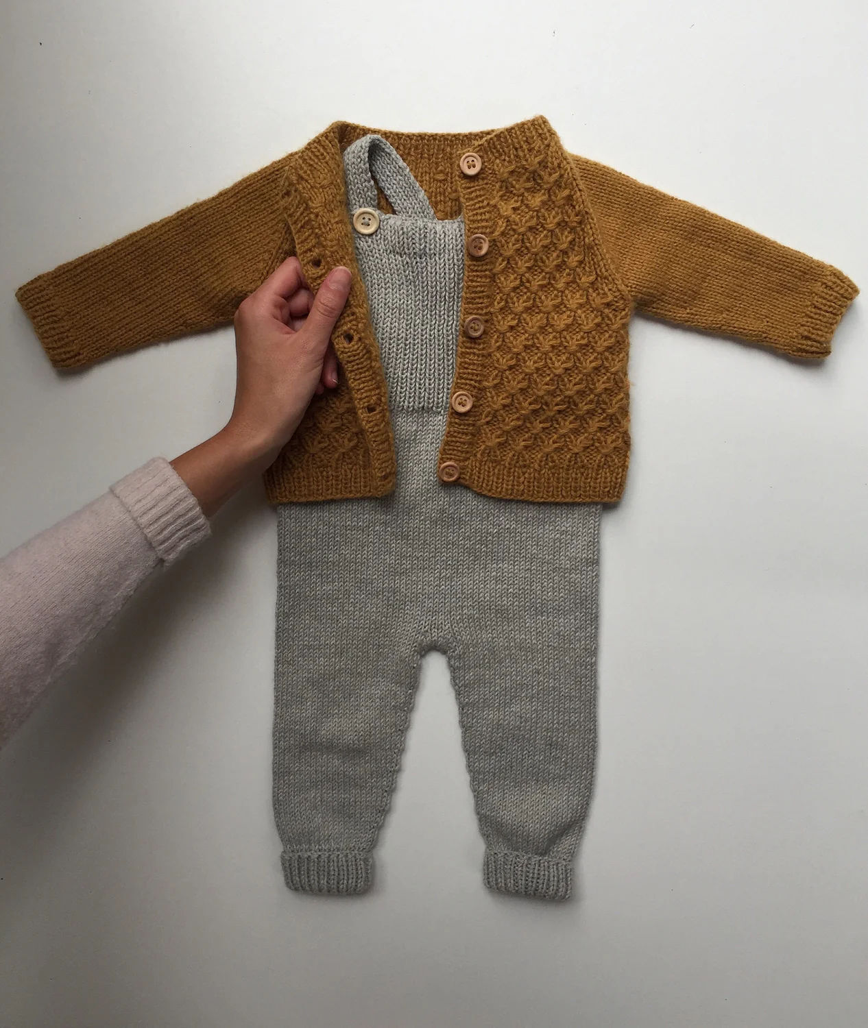 Garnforslag: Merinoull fra Sandnes Garn (50 g = 105 m), Duo fra Sandnes Garn (50 g = 124 m), Debbie Bliss Baby Cashmerino (50 g = 125 m)